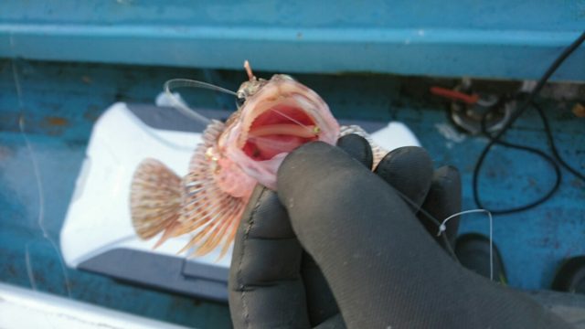 この後はカサゴがポツポツと釣れる程度で、風も強まり、後半はべた底指示でほぼほぼカサゴ狙い状態でしたが、カサゴのアタリすら無い状況…
