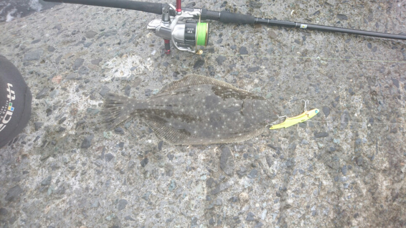 ポイントに入ってリザスターを投げて第二ブレイク辺りでフォールさせて、フォールで食ったのか巻きだしでは重くなっておりヒラメがヒットしました、上げてサイズを計ると69cmでした、70cmに1cm足りなかったのが残念でした。その後は場所を移動して同じリザスターを投げてると40cmちょっとのヒラメが沖でヒットしてキャッチしました。
