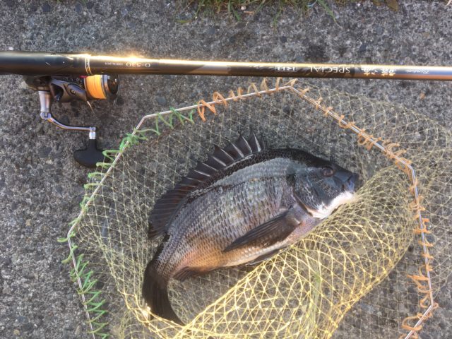 潮も変わり、底潮が効き始めると納竿ギリギリでなんとか黒鯛ゲットできました。