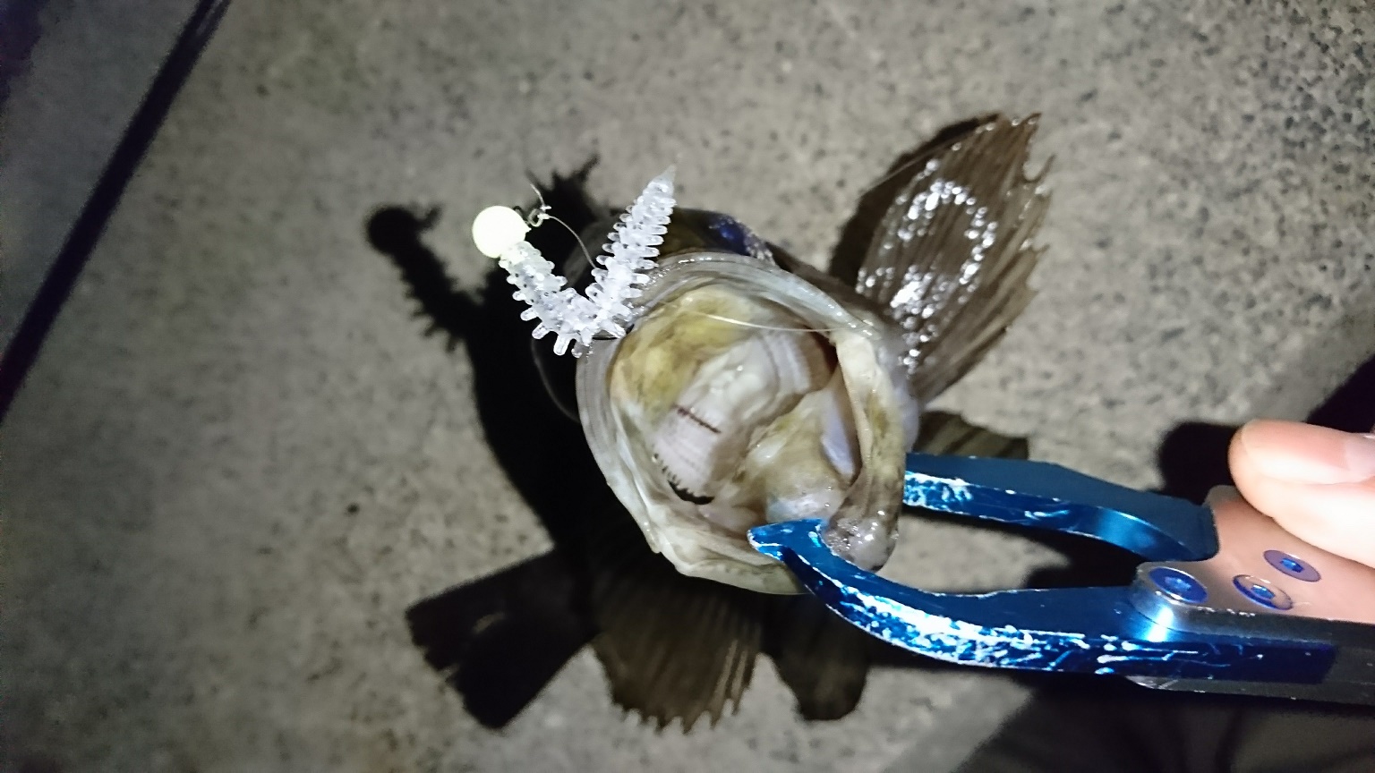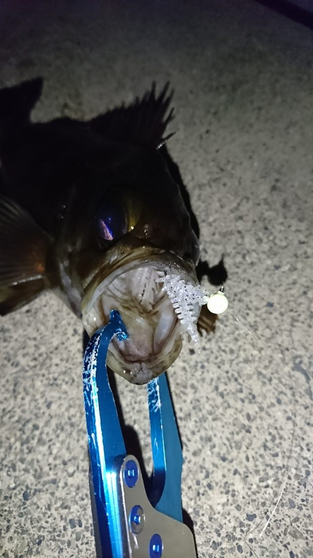 またまた『CrazyOcean 海毛虫Jr.1.8in 』の威力に助けられました♪ 一雨ごとに春の状況に近づいている3月初旬、そろそろメバルのサーフェイスパターンが爆発するシーズンに突入しているだろうと1gのジグヘッドリグで表層を探ってみるが・・・・・反応が・・・・ナイ??? M師匠も悩んでいる様子。 こういうときは表層のレンジに拘らずにセオリー通りにボトムに着底させてベイトが表層に上がっていくパターンを演出するほうがメバルの生息域に近づけて誘える為、効率的にヒットに持ち込めるのですが・・・・。スタンダードな釣りでは面白くない!自分のレンジに魚を動かせてヒットさせるのが気持ち良い♪ (ドSなのかな?)M師匠はセオリー通りに釣って良いサイズをゲットさせている。エリアを変えて流れの強めのポイントで表層ドリフト、『コッ』と微かな反応でフッキング!流れの中でのgoodサイズのファイトを充分に堪能してランディング。25㎝の体高の立派なメバルをキャッチできました♪ 海毛虫の波動形状はスローに引けてより表層に近いレンジを攻めれるので春のシャローレンジパターンにも最適です!