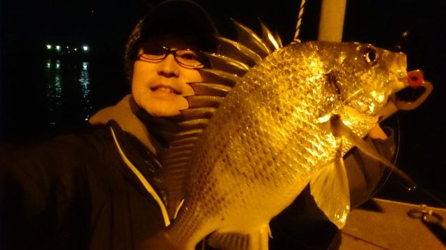 前日F氏のガイドで焼津港周辺をサーチしたところ何回かバイトがあったので、今回は小川港を一人でラン&ガンすることにしました。F氏にチヌ・キビレのポイントを聞いたところ、流れ込み、ストラクチャー、シェードなど、攻めるポイントはどれもバスやナマズでも狙っているかのようなところを攻めるという返答でした。そして、ズル引きの場合トレーラー付きチヌラバなどを底を取ってからボトムをゆっくり巻くだけ、カキ殻などにスタックした時はロッドを煽って外します。チヌのアタリがあった時は、掛かるまで巻き続けること。なんともタイラバ的要素も含んだ奥深い釣りです。今回使用したタックルは9フィートシーバスタックルに、「がまかつ ラウンド211 2.6g#1」のジグヘッドにガルプ1.5インチホッグをセット。チヌがいそうなポイントの沖にキャストし、ボトムをゆっくりただ巻き。すると、フォールでミニカサゴが食ってきました。外道で根魚やマゴチがよくヒットするそうです。ポイントを移動して、巻いているとゴンゴン!ん??ゴンゴン!ん!?アタリだ!ゴゴン!巻き続けてヒット!!とても分かりやすいアタリでした。35cmキビレでした。一人だったので自撮りをして、リリース!タイラバのようなドキドキ感とバス的な攻め方が合わさったチヌゲーム楽しいです。