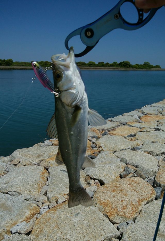 3連休の初日!子供達は学校の為、久々に宮川にデイシーバスに行ってきました!潮はド干潮・・・。潮もほとんど流れていない感じ・・・。見た感じでは全く釣れる気がしない・・・。それでも時間もないのでキャスト開始です!水深もだいぶ浅くなっているのでダイワ・ミニエントの早巻きで手返し良く釣っていきます!少しでも水深のある所を狙い釣って行くと・・・ゴンッ!!!!待望のアタリ!!!匹も良い!!サイズは小さいものの本命GETです!!この後も2匹目をと頑張りましたが・・・タイムアップ・・・。それでも満足の釣行となりました!!これからシーバス&チヌの本格シーズンで楽しみです!!