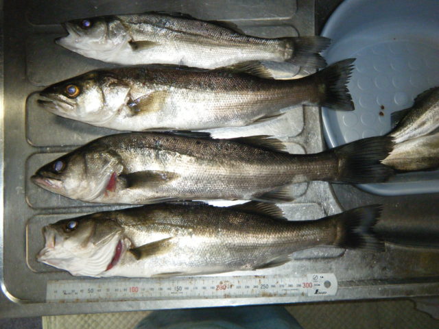 セイゴ狙いで敦賀周辺へ、日曜の夜なので人は少ないと思いポイントへ向かうと先行者4名(汗)後半3名追加(汗)とりあえず魚探し、皆さんハードプラグなので反応が出ていない様子。私は今回エサを使っています。釣り場到着がPM12過ぎになるのが予想されたのでワームで悩まない作戦。それが良かったのかアタリはあります。ショートバイトで掛からないので誘い方を変更すると食った!まずまずのセイゴ1匹目、チビも釣れて連発!地味なバイトで今日イチがヒット~ネットに入れてOKその後もボチボチ釣れてアタリが止まる。ポイントを変更してチビを追加して夜明けにて終了。最大43㌢、40㌢、37㌢他全体で21匹となっています。今回もボラが1匹釣れて刺身になりました。