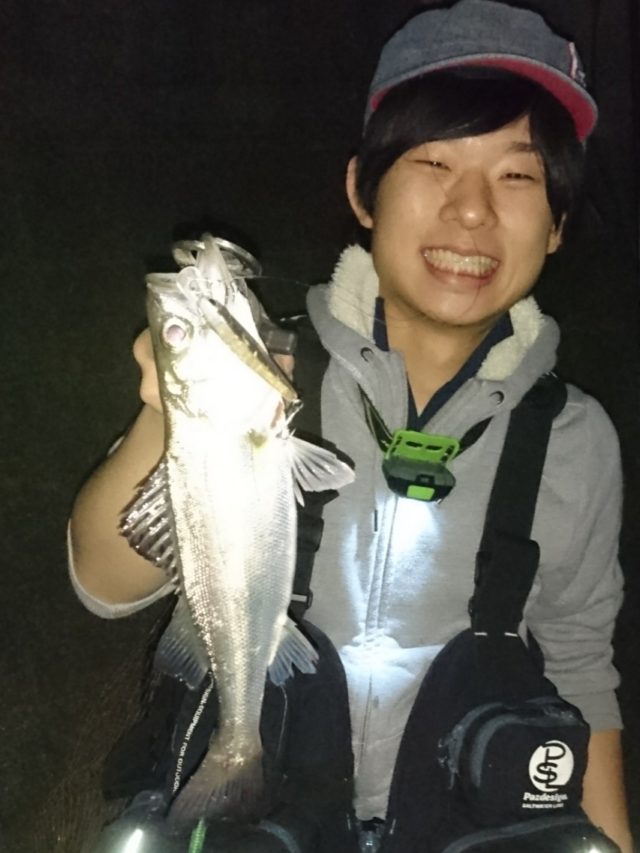 シンキングミノーのゆっくり巻きで、チビを一匹。後藤さんはボイルを発見してゴツン!名古屋港初フィッシュにニッコリ♪♪