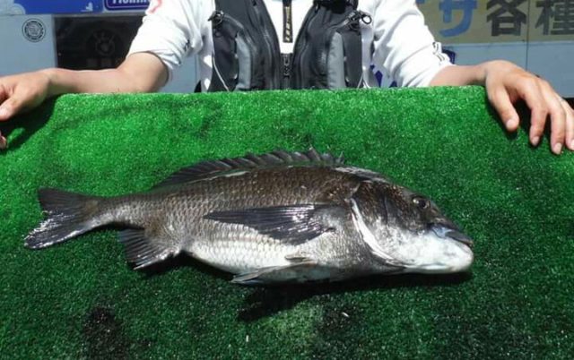 半夜釣りもスタートしておりこの日は通し釣りの予定!!出船は5:00!!前日の波が残っているとのことで・・・。出船まもなく・・・湾内でザワザワ・・・。これは沖はダメだろう・・・。お客さんは10名ほど・・・。沖に行くとものすごい波・・・。大ウネリ・・・。これは・・・。西穴裏に3人下ろし・・・地方の裏に5人下ろし・・・。私はどこに降りようか?船長のおすすめはケーソンです!最近マダイもよく釣れているとのことでしたが・・・私はケーソン横のウノクソに渡礁しました!初めての磯です!この日は珍しくエギを持ってきていたのでエギングからスタート!エギングの苦手な私はすぐに諦めて終了・・・。グレ狙い!コッパに遊んでもらおう!開始してエサは全く残らない・・・。少ししてフグ・・・。フグ・・・。フグ・・・。そして時折コッパが顔を見せてくれる!コッパといっても手の平以下のサイズばかり・・・。そしてスズメダイ・ネンブツダイ・・・。9時の見回りでチヌ釣れたか~と聞かれ・・・。そうだこれはチヌ狙いしようと少し棚を下げると・・・すぐにHIT!!!よ~~~引きます!!!明らかに首を大きく振ってチヌの引き!!!上がってきたのは体高のある立派なチヌ!!自己記録の54cmでした!!この後はコッパグレが数枚釣れて終了となりました!!あまりの波の高さに昼からの便は釣行を断念致しました・・・。