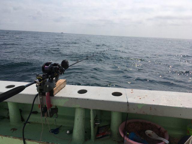PEライン3号にリーダーは結ばず緑スキンのショート吹き流し3号を使い、36Mあたりを探るもほぼあたりがなかったため、それに見かねた船長と一緒になって34M付近まで探ったりハリスを長くとったりオキアミを付けたり外したりと試行錯誤するもあえなく撃沈。