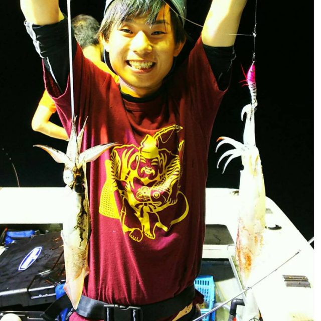 そこから暗くなり、ライトが灯るとタナが浅くなり12号にチェンジ!10m~35mを大きくあおって、フォールさせる誘いかたで、探り数を伸ばし、マイカだけで、40杯近い釣果となりました!!