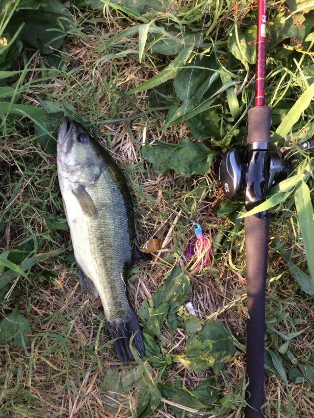 水路をブレーバーのスナッグレスネコで、、何匹か子バスと遊んでいたのですが、突如ガツンとバイト!!