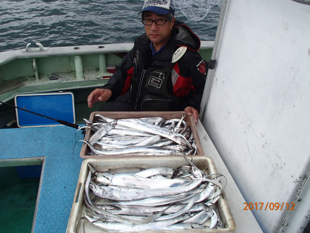 七福丸さんにお世話になりました。朝こそ雨はありませんでしたがー 中盤は激雨もあり大変でした。ポイントは伊良湖沖で結構な波・うねりの中釣りを開始、初のアタリで掛けたタチウオは指1本半(汗)苦労しつつ何とか魚を追加していくとそれなりの数は追加できます。やはり根気は大切になりますねー 長めの竿で釣っていましたが途中から短めの竿にチエンジ!シーマイティーR!ダイワの6/4調子からシマノ7/3調子に変更して かなり船がゆれるので 微速で巻きながらアタリを丁寧にアワセていく方向でタチウオを追加、終わってみれば59匹のタチウオを釣っていました。やはり竿で釣果に差が出ることや竿の欠点もわかったので修正してリベンジします。