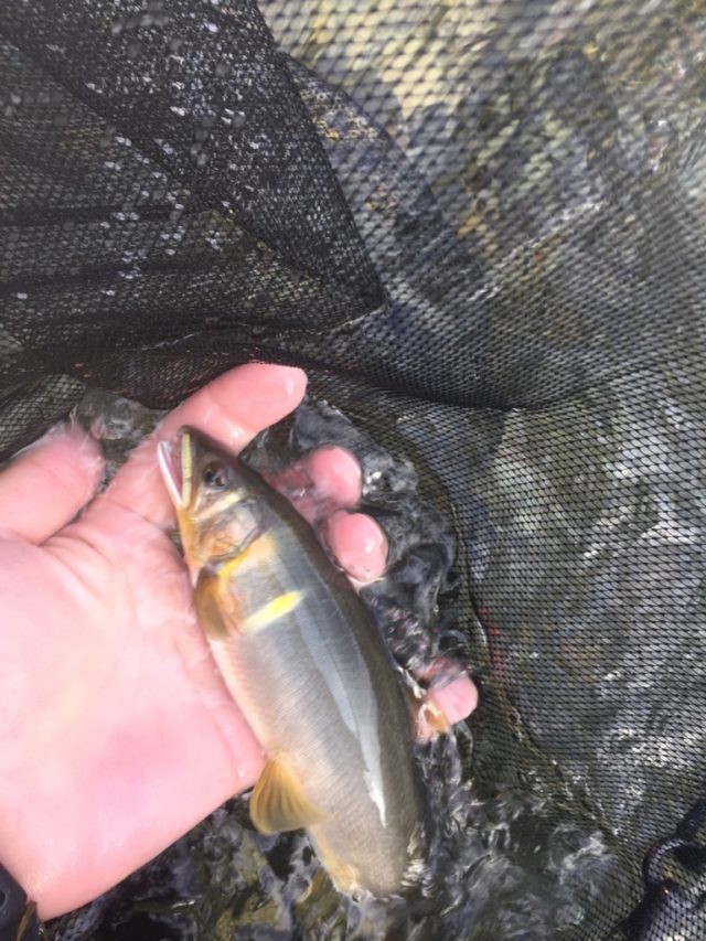 グイグイと川を横切っている最中でヒット!読み通りの掛かり方に笑みがこぼれました。その調子で釣り下り10匹ほど釣れましたので、本流に場所移動します。鮎の瀬などやってみたかったのですが、人が多くて入る場所が決められず、1時間30分ほどウロウロと移動し時間ロスがもったいなかった。