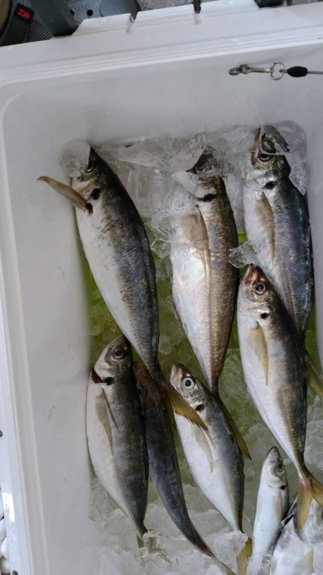 午後17時出船のアジ釣り行ってきました。前日の雨で濁りがあったので良い状況とは言えませんでした。