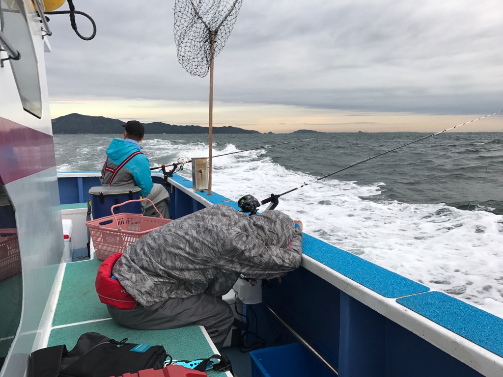 直接ハリに掛かってくるチャリコの連チャン等もあり大苦戦。後半ハマチサイズがヒットし、なんとか青物の顔は見れましたが、一緒に行った若者達には厳しいデビュー戦となってしまいました。