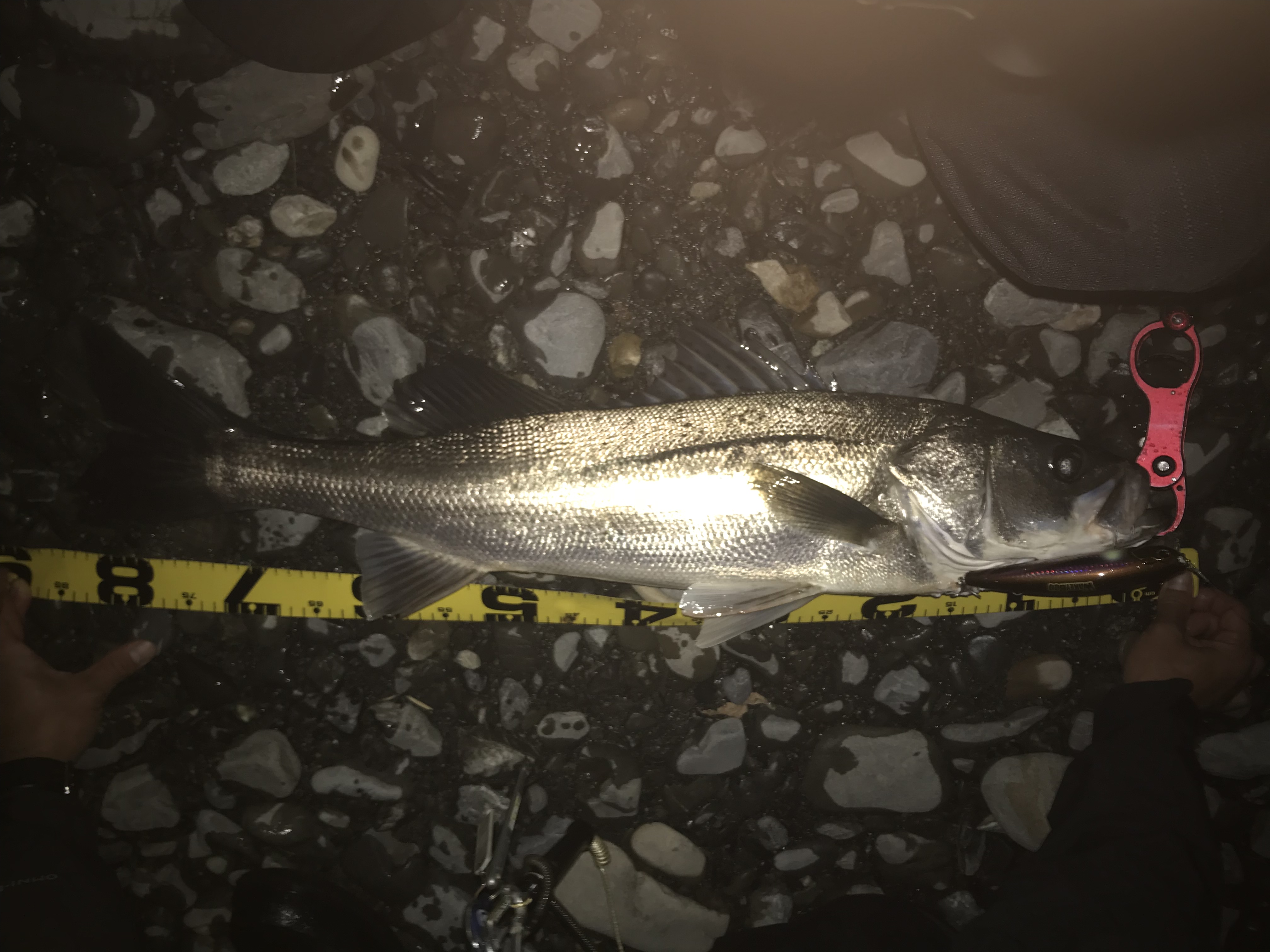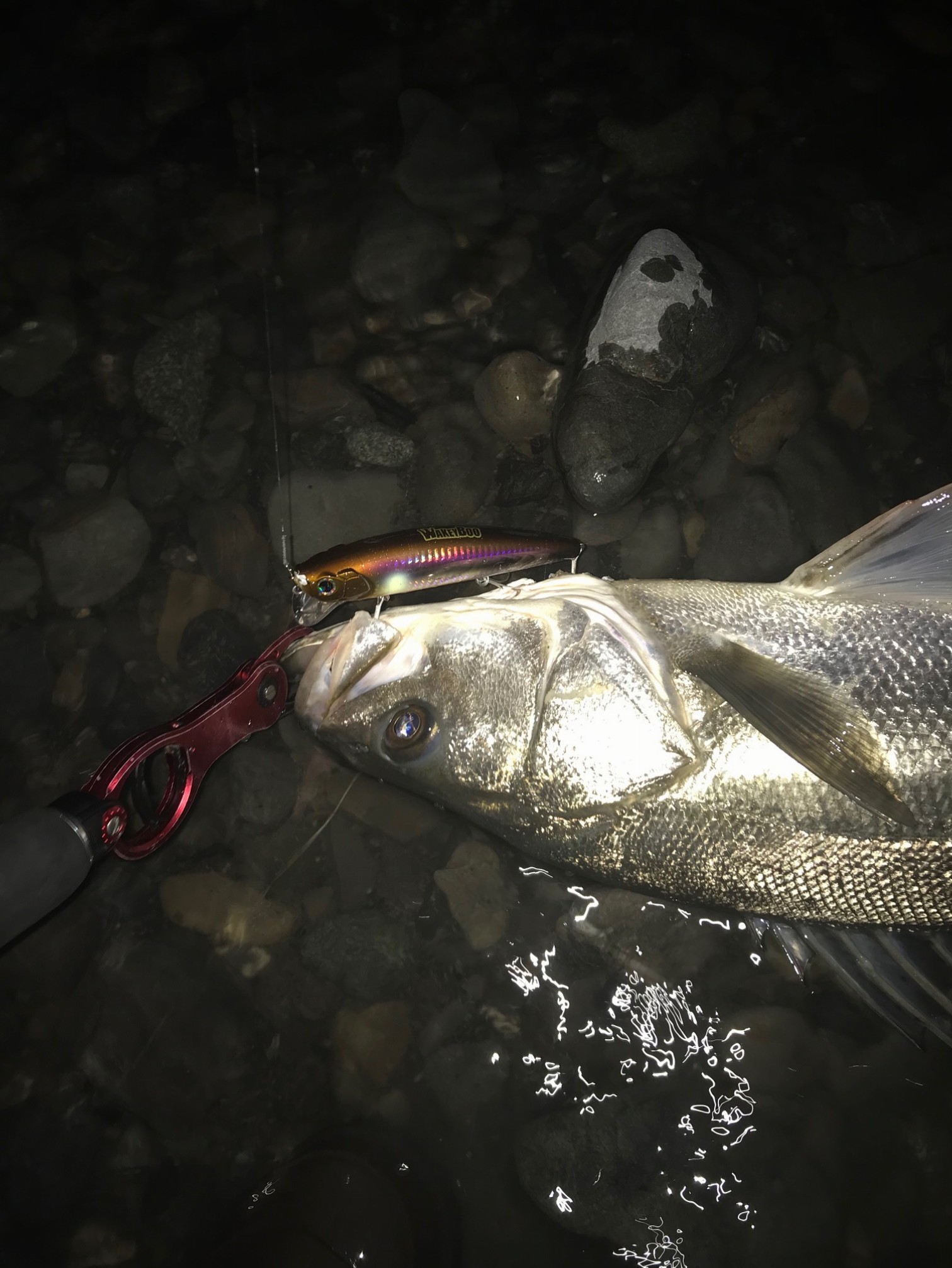 当日指定したポイントに早めに到着して明るかったので下見がてら釣りを開始してBKRPを一投目でバシュ!!とミスバイトで同じ所に投げるとまた出て60無いぐらいのシーバスが釣れました!!
