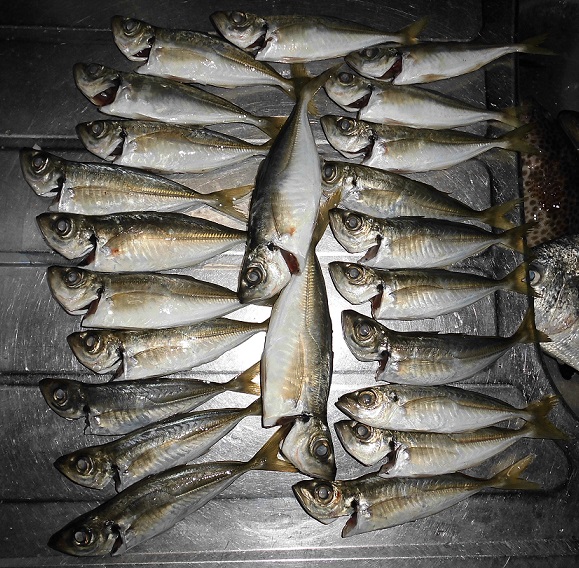 前回の尾鷲調査で何とかなりそうな雰囲気をつかみかけていたので今回はワンデイで尾鷲釣行です。釣り場に着いてマメアジを見つけるが本当にマメなので見切る。前回 見つけた軽いウエイトに好反応でした。PEを組んだタックルで違うアジの群れを探すと見つけた!少しだけサイズアップのアジだが2匹釣ったところで風が吹きアジ確保断念、タックルを替えキビレを狙うと1発バラシですぐに1匹確保からオオモンハタを確保して短い一晩目終了。昼間少し調査をしてキス・メッキを釣り夕暮れから短時間調査に入るとまぐれでトロアジを確保!しかしその1匹だけ、チビセイゴを追加してチビレもゲット!場所を移動して風で狙えなかった場所の攻略、エステル03に変更して探ると一撃!しかし潮が良く動き魚のレンジまで送り込めない、それでも8匹釣れて他も探るとデカイカサゴが釣れてラストにキビレがヒットしてラインブレイクで調査終了です。
