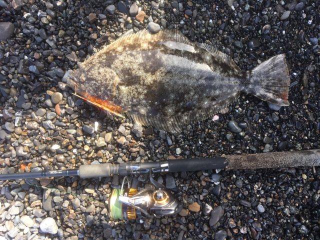 しかし時合いは長く続かず、速さはもともとなかったですが重かった潮が軽くなり出していたので再びハリバット90で手前を早めに探ると今日一番のアタリが来ましたがそのまますっぽ抜けました(笑)一番新しい針だったんですが・・・笑
