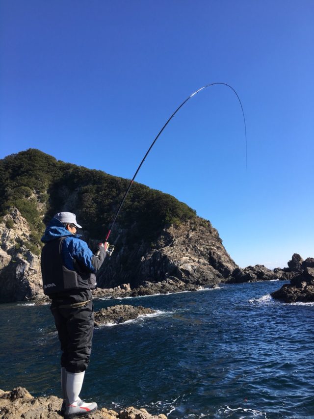 風が強く磯竿が持っていかれてしまうほど・・・ラインも風にあおられて浮いたままの苦しい展開。