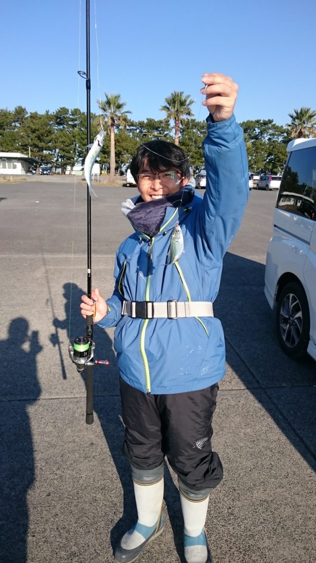 今日は、出勤前に青物の様子を見に吉田方面に行ってきました。ポイントに到着するとまだ暗かったので、カマスからスタート!!先に釣りをしていた宮越チーフがカマスゲット!