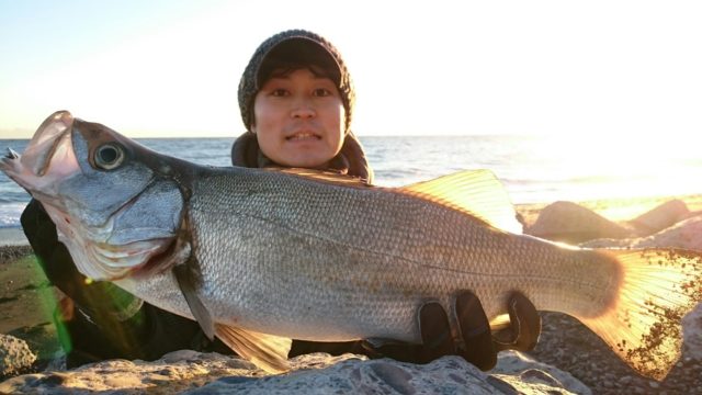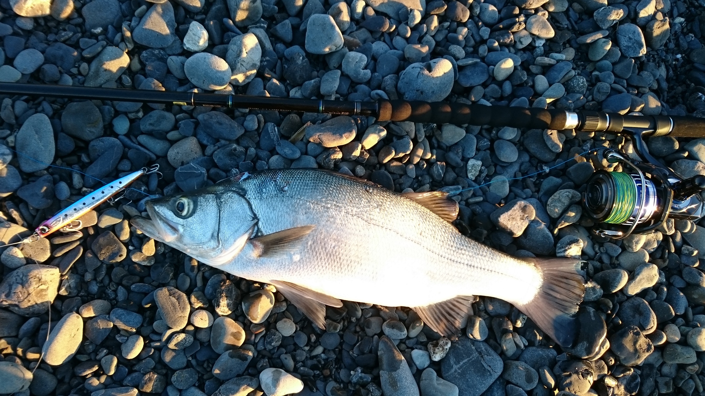 青物狙いで6時前にポイントに入りました。コノシロの反応は無いですが、とりあえずかっ飛び棒をキャストして一度着底させゆっくりただ巻きしてきます。潮周りは7時頃に干潮の潮止まり。この時間までが勝負です。数投したとこで、ルアーが良い流れに入ったのか、抵抗感がありました。そのままゆっくり巻き続けていると、波打ち際でゴーン!!来ました!しかし、強い引きに耐えていると惜しくもフックアウト・・・逃がした魚は大きいとはこのことでしょうか。気を取り直して続けました。この時の外気温1℃で極寒です。数投ごとに指を温めながらじゃないと指が痛いです。薄明るくなった6時半頃再び波打ち際でヒット!!しかも、ワラサのような強烈な引き!そいつは、引き波の中から背を出し粘ります。すぐそこにいるのに上がらない・・・リールを巻かず耐えながら後ろに下がりずり上げると、銀ピカボディのヒラでした。55cm。初のヒラフッコ釣果です。水面から背を出して粘るその姿はまるで、24cmクラスの瀬鮎を掛けた時のような感覚でした。しばらく、その余韻に浸りました。その後は何も無く、結局コノシロは現れませんでした。潮止まりと、しらす船の通る時間になったので納竿しました。