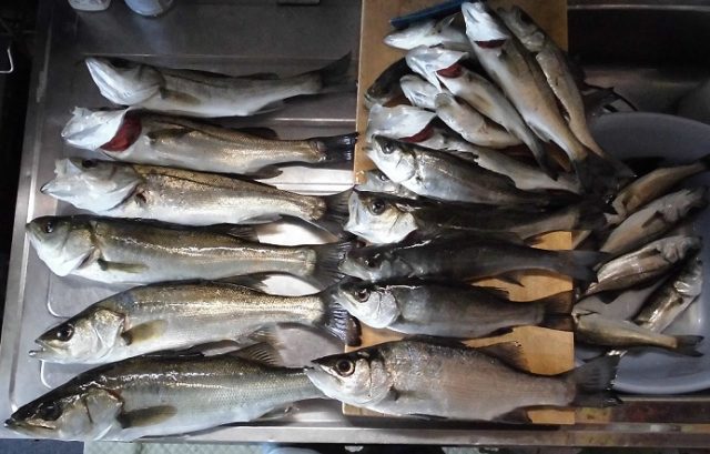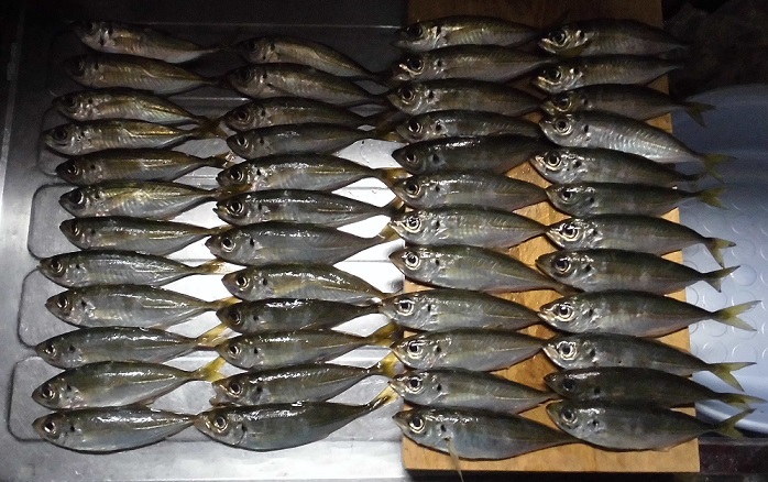 また尾鷲?!と思いますよね、続けて行くから釣果が出るんです。釣行の度に間隔が空くと釣果は伸びない。それは、こうなるであろう!と想像で作戦を立てるからです。それが外れると・・・本題に入ります。仕事終わりから釣り場に走り1ヶ所目、アタリ皆無から徐々にアタリが出て30㌢絡みのセイゴが釣れる。ジグ単で釣れるのは前回の釣行でわかっていたのですがバラシが増える。ここでリグる。すると一瞬掛かりが良くなるがアタリが減る、何かがハマっていない—シンカーウエイトを変更して投げるとアタリ!ここから連発!明け方前に他の場所を見に行くがパッとしない。夕暮れも同じ場所で投げるがベイトは居るが本命は不在。場所移動してアジを探すと居た!しかし5匹釣れて沈黙、少し動いてみると居た!レンジは深めだが何とかアジを追加していきAM1時に止めるつもりが2時半に終了です。セイゴは27匹でアジは延長して48匹でした。