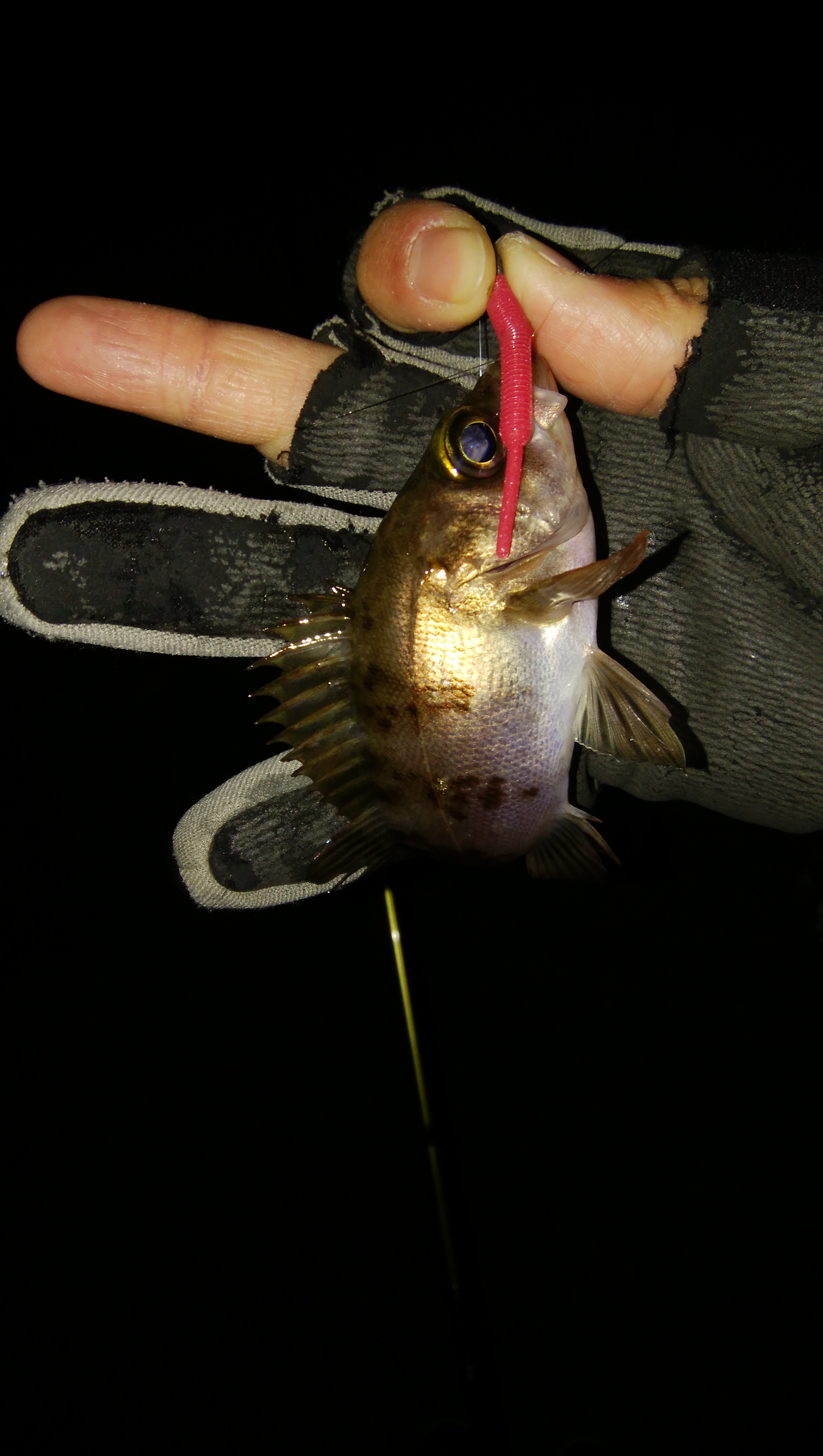 久々にメバル狙いに行ってきました!本当はもう少し早い時期から行く予定でしたが・・・足が向かず・・・。この時期は小さいので顔が見れたら良しと言うことで短時間勝負です!潮はだいぶ下げており潮が少なそう・・・。とりあえず向います!到着してすぐに開始です!この日は比較的暖かい日です!1投目!早速のアタリ!メバルのアタリは気持ち良い♪♪小さいものの本命GETです!!このサイズが湧いているのか??・・・・・・・そこから反応無し・・・。ポイントをズラしていくがたまに小さいアタリがあるのみ・・・。これは厳しいぞ・・・。粘って釣っていると一段と小さいサイズを数匹追加!!ここで風も強くなってきて釣りにくくなってきたので終了しました!!サイズは小さいもののやっぱりメバルのアタリは気持ち良く楽しいです!!当分はメバル狙いで決定です!!