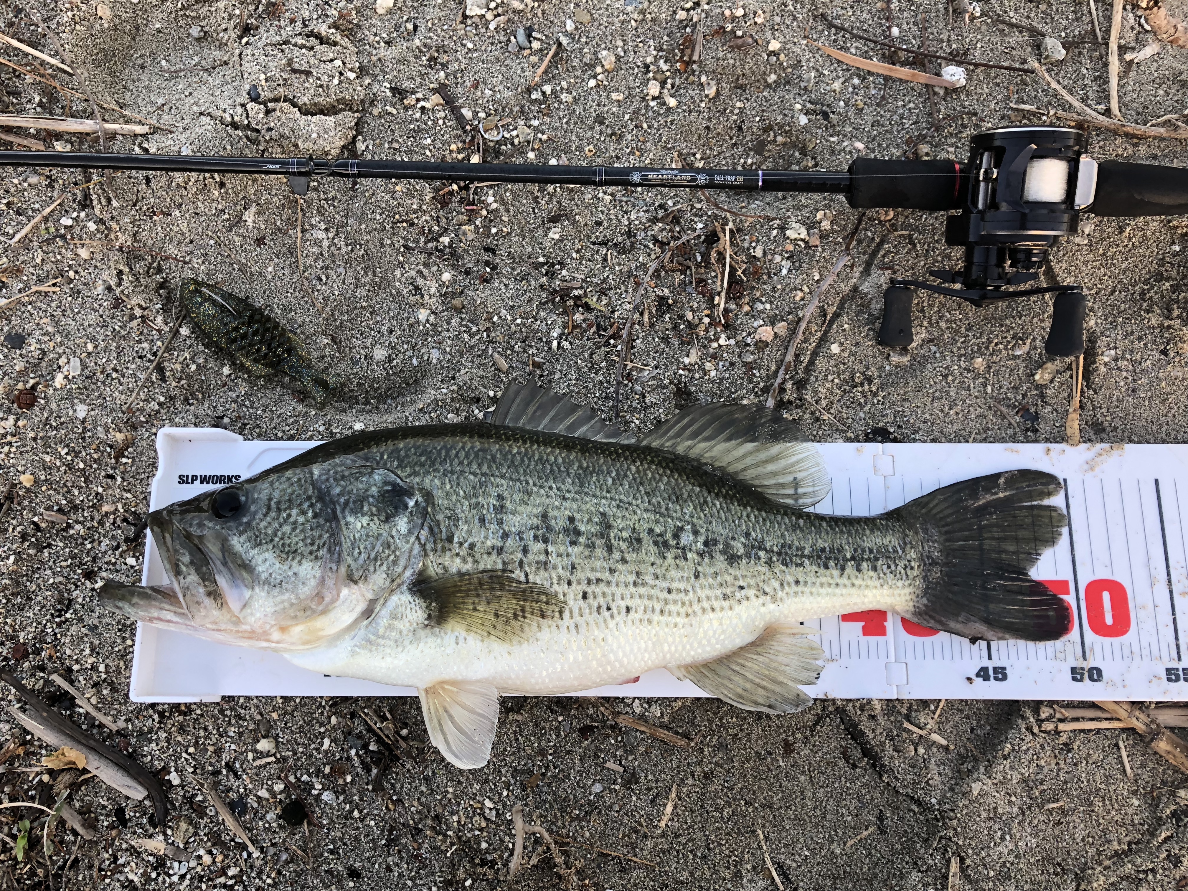すると横井さんから釣れたメールがwエスケープツインできたとのこと。気を取り直しキャストするとすぐまたバイト!!49cmのバスでした。さらにすぐバイト!今度は余裕の50up!しかし手前でフックオフw