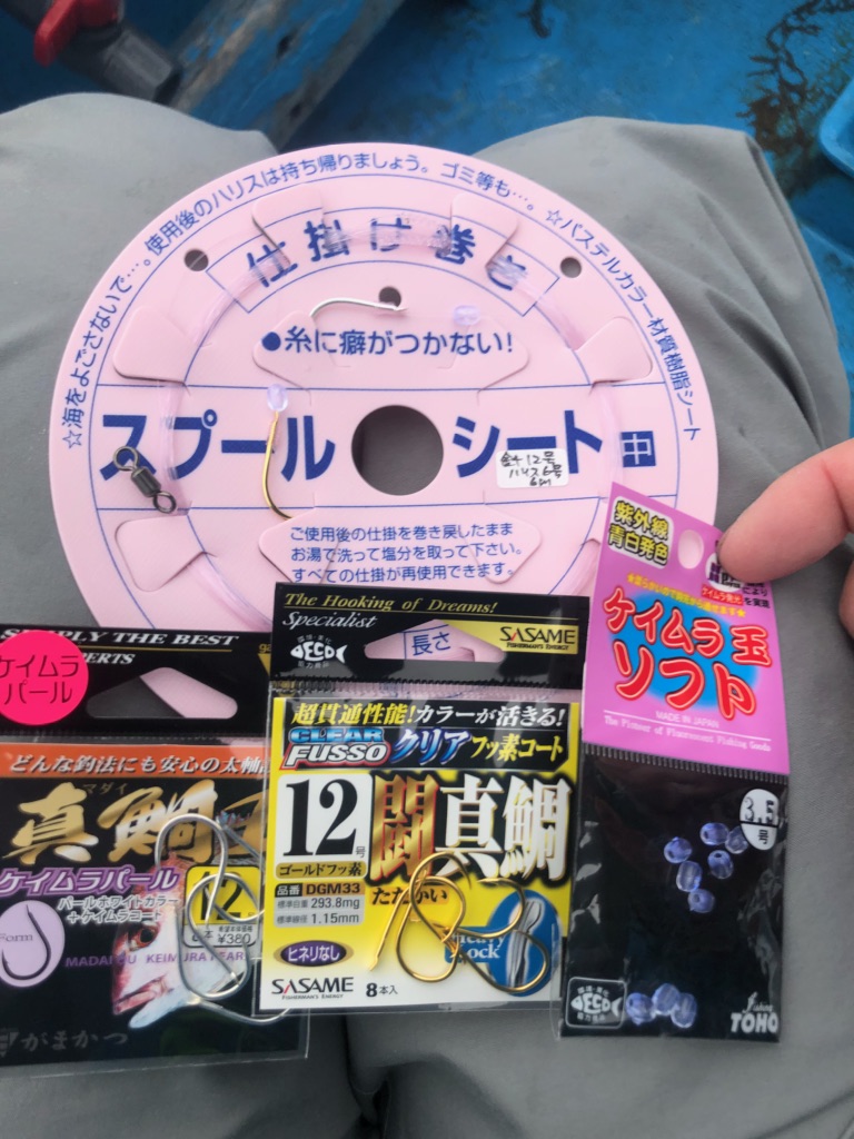 好調の完全フカセ釣りに行ってきました。鷹巣ではありませんでしたが、船長おすすめポイントに出船10分で到着。大きな沈没船があるポイントのようです。1週間竿が入ってなかったそうなので期待大です。朝船長が潮の速さを確認しサルカン2個つけて流し初めてみます。シーボーグ500ATはこの釣りに特化したリールとなっており、1mごとのアラームで潮の速さを確認したり魚の引きがあると自動でクラッチを入れてくれて当たった棚まで記憶してくれるすぐれもの。朝の1投目から同船者がヒット。本命の真鯛を釣り上げていました。私も1投目は糸を流しすぎてしまいましたが、2投目は少々張りぎみでながすとヒット!ぐいぐいと力強い引きで50センチオーバーの本命ゲット!その後も朝の時合は続き最大62センチまで釣る事ができました。後半は潮は速すぎて付けエサとマキエを合わせるのに苦戦し合計4枚で終了となってしまいましたが、満足いく釣果となりました。機会があればまたチャレンジしてみたいです。