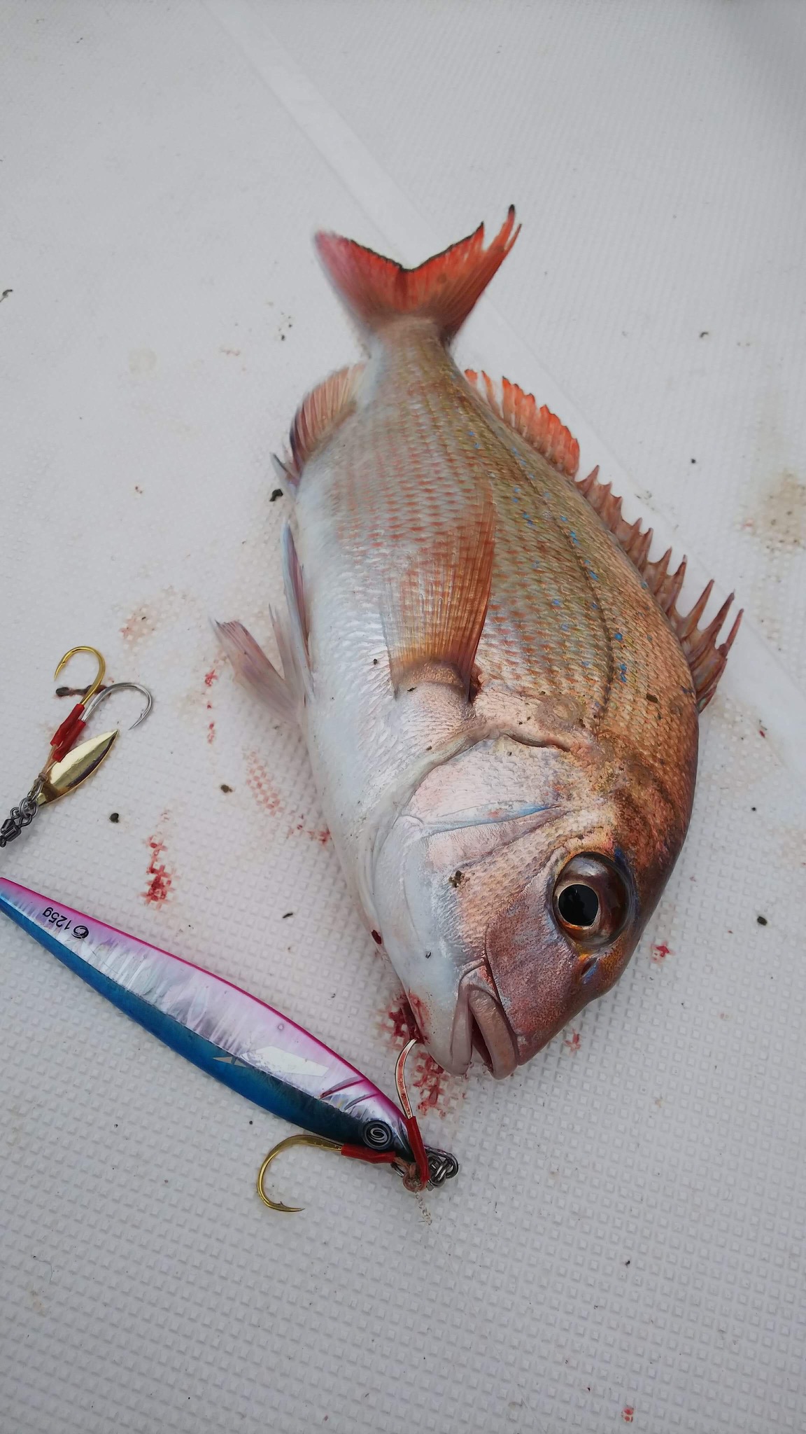 船長のFさんはオーシャンフラッシュセミロングで1mのブリと45cmのマダイ、タイラバでマダイを釣っていました、流石です。