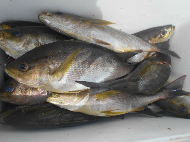 その日は全体的に渋く、1人4~5枚くらいが平均でしたが、結果的に1人で16匹と満足のいく釣果になりました!数は少なかったですが粒は大きいのが多く、釣りの後料理しましたがボリューム満点でとても美味でした!外道のカツオもおいしいよ!