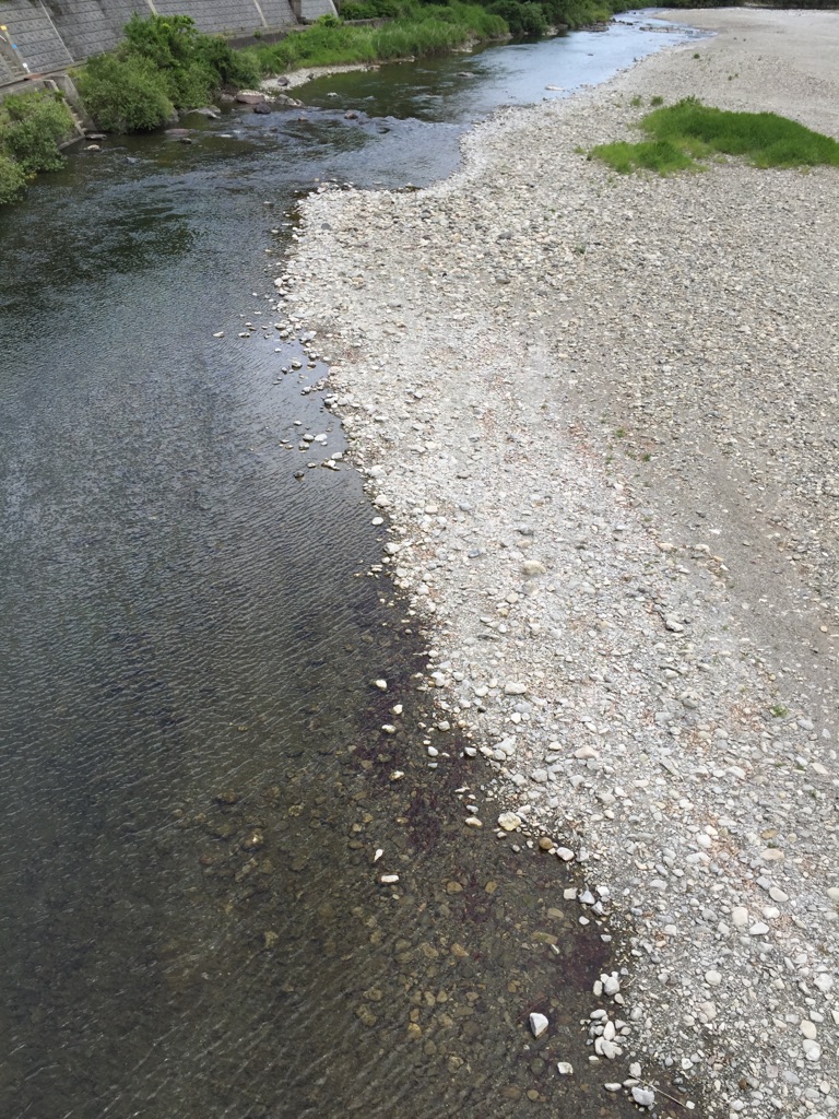 15〜18cmの鮎がボツポツとたま〜に掛かる程度でとても効率が悪く、風が強くなってきたので10匹釣った昼には終了としました。