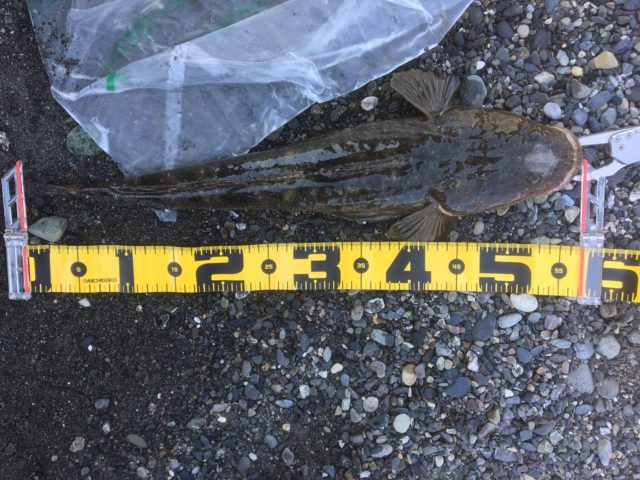 日も上がり切っており、風も吹き始めてあまりいいコンディションではありませんでしたが標準(私にとって)の7gのヘッドにかえて手前を流していくといいアタリが出てまずまずのサイズのマゴチをゲット出来ました。