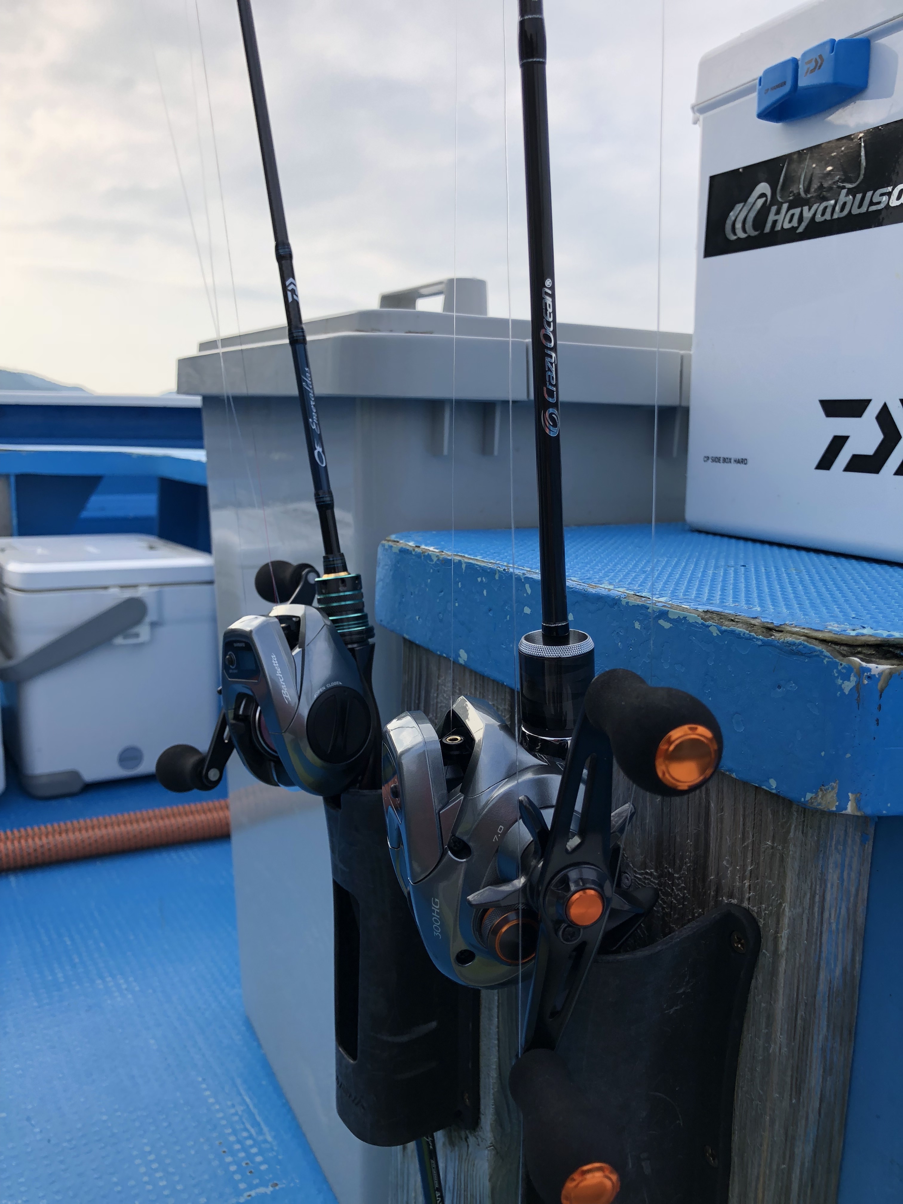 水深は約100m。タナも結構バラバラでとりあえず底までつけてワンピッチで上まで誘うとの事。