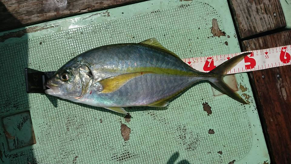 そして、出船はなんと午前3時半!! 寝不足で船酔いしそうです。ポイントについても辺りはまだ真っ暗。仕掛けを投入すると、幸先よくイサキが釣れてきましたが、その後がなかなか続かない。ひたすらコマセを撒きながら続けると、まばらにイサキが釣れてきます。さらに、ゴマサバ、チャリコ。厳しい状況になりましたが、とうとう時合いが来たのか、やっとの事でシマアジ確保。さらにミノカサゴ。5m近く誘ってコレが掛かってくるとは・・・。望み薄かと思っていたところ、一気にドラグが滑る強烈なアタリ!! 口切れしないかハラハラしつつ、慎重にやり取りした結果、本日最大の50cmシマアジゲット!見た目に体高が高く、いかにも美味そう!苦労した甲斐が有るというものです。全体釣果は物足りませんでしたが、この一匹に満足して納竿となりました。翌日持ち込みで刺身にしてもらったシマアジは、超絶品でした!!