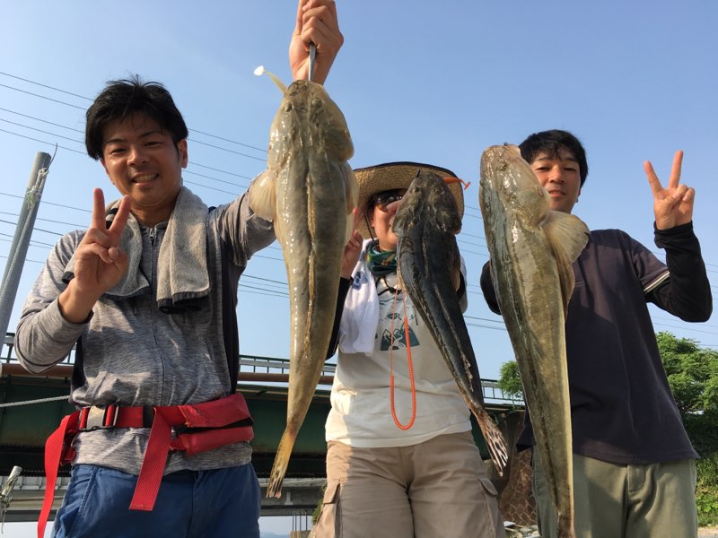 浜名湖で初めてのボートフィッシング!レンタルボートです。狙いは色々、ルアー、エサなんでも来いのエンジョイフィッシング!はしくにさんでボートを借り、浜名湖初ボートということで、航路の説明、ポイントの解説、操船練習などを済ませてから、いざ出船!航路を走っていると、青物のナブラを発見!早速小型のメタルジグをキャストすると、同船した豊橋店スタッフ春田くんにヒット!アブコをゲット!サイズは小さいですが、やっぱり良く引きます!そして続けて自分にも!スタッフ長井にもヒット!水面近くをゆっくり目で巻いてくるとよく釣れました!ショゴもまじってました。そして、潮止まりタイミングで、今回やりたかったボトムワインドをやります。ZZヘッド1/2オンスにマナティー90のアカキンで開始!2回シャクってはボトムを取りの繰り返しをしていると、春田君にヒット!しかしバラし。自分にもヒット!30センチくらいの小型マゴチですが、初のボトムワインドフィッシュでした。この後も50センチくらいまでを5匹ほど釣り、ヒラメも混じりました。そして風が吹いてきたので場所を変え、キビレのボトムワインドへシフト。しかしノーフィッシュ。エサではチャリコやゼンメが遊んでくれました。次はタコ狙いでスッテをズル引き!すると一投目でヒット!しかし後が続かず小休憩を挟み再び出船!ボトムワインド一本に絞り、開始!するとここからラッシュがかかり、バイト多発!結果、60センチ弱のマゴチ頭に、55センチほど3本、40センチ台多数、他リリース!バラし多数!の好結果となりました!ボトムワインドの適切なロッドや、アシストフックのシステムなどの改良点も発見できました。魚種も豊富で楽しめる浜名湖ボートフィッシングに是非出かけてみてください!