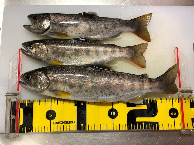 流れが速く、うまく仕掛けが馴染まないので苦戦しましたが、なんとか綺麗に流れるラインを見つけ出しじっくり粘っているとツツンっと目印が動きます!!スッとあがってきたのは15㎝程のアマゴ!笑 今年はこのサイズが多いです!小さい!!しかし、ゴーグルを付けて水中を覗いてみると…。めっちゃ魚いる!!笑 デカいのもいる!!これは釣れるまで粘ります!オモリのサイズを変えたり、流すコースを変えてみたりと試行錯誤しているとついに目印が消えるアタリが!!グングンと強い引き!!やっときた!!23センチ程の嬉しいサイズをゲット!!その後も森君も26センチの大型をゲット!!!魚体もとても綺麗で二人で見惚れてました!笑 今回は小さいながらも数釣りも楽しめ、大型も見れてとても楽しい釣行になりました!まだまだ猛暑が続きそうです。渓流ならとても涼しいので楽勝です!みなさんも是非行ってみて下さい!