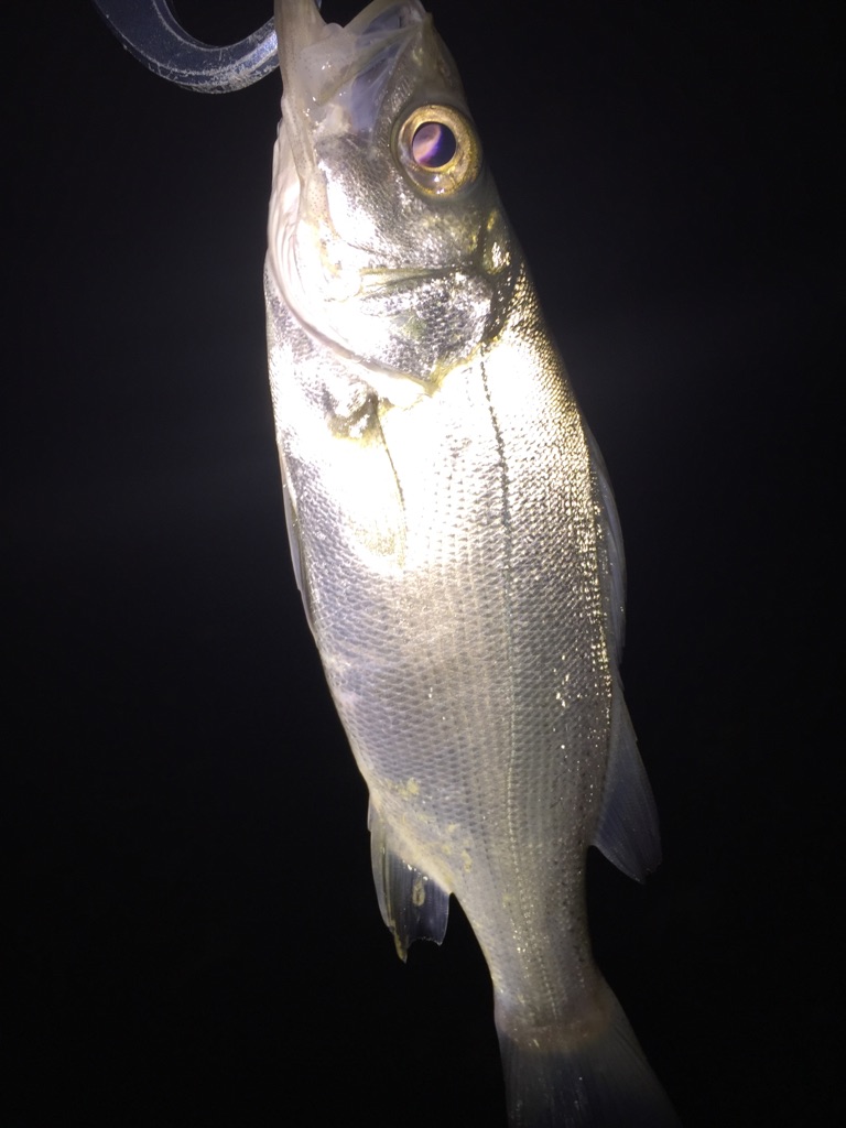 浜名湖へセイゴ釣りに行きました。大きいのも狙いましたが全くアタリが無かったのですぐにセイゴ釣りに切り替えました。1投目から食ってきて、バラしそしてまたヒット。20〜30cmのヒラセイゴでした。