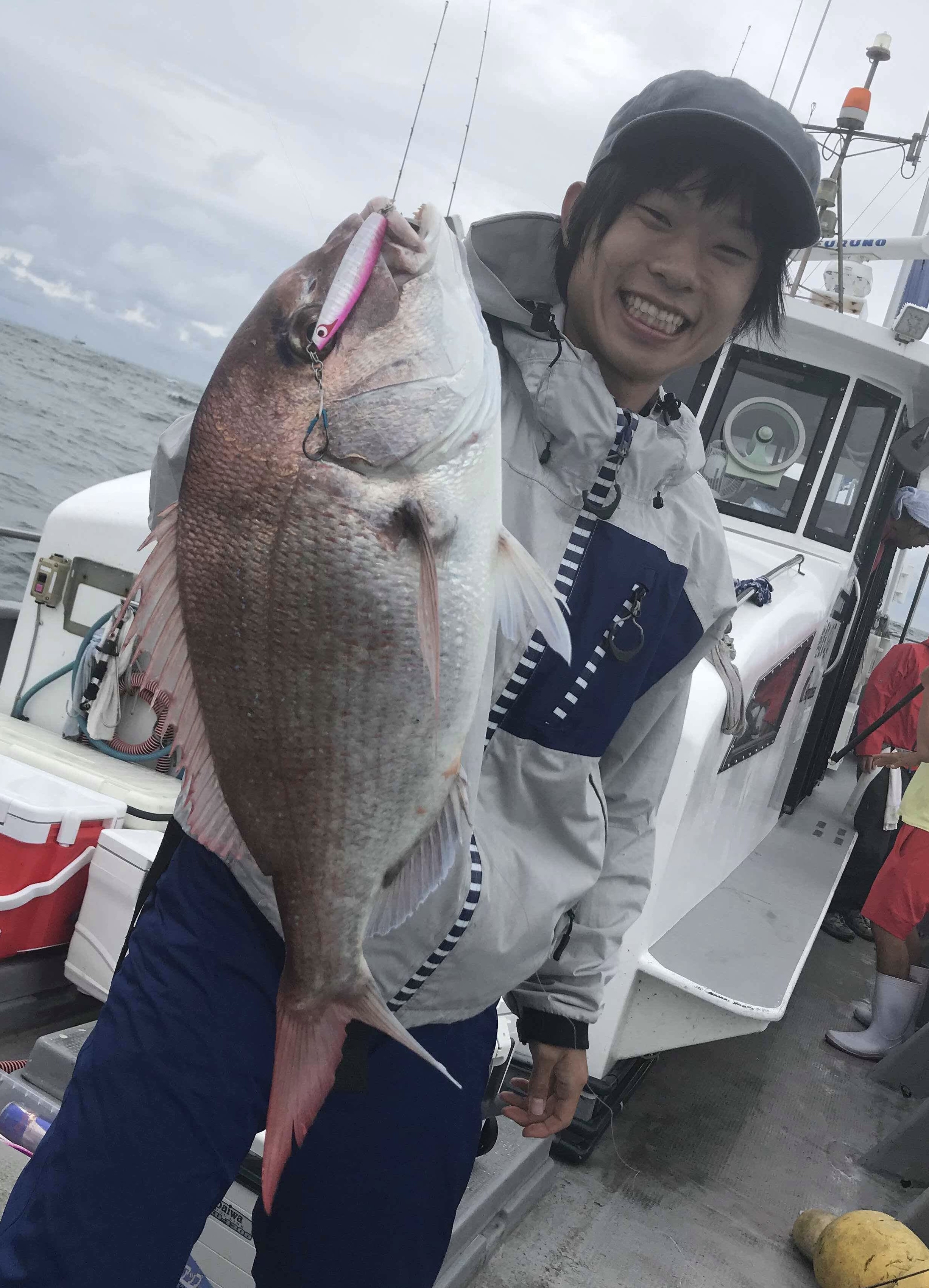 新しく購入したロッドが程よくしなり上がってきたのは50cmクラスの真鯛!!