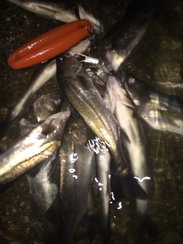 浜名湖へ行ってきました。 4人で40本くらい釣れました‼️ サイズは30〜45cmがメインですが、50cm以上もたまに混じります。 ミノー、シンキングペンシル、バイブレーション、をローテーションすると効果的で釣果を伸ばせます。 台風後や雨、雨上がりになるとシーバスが良く釣れるので狙い目です。
