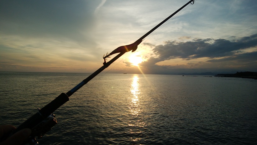 この日はなんとなくエギングに行こうと思い夕方狙いでエギングに出撃!実はエギングが苦手な私・・・。だからあまりいつもは行かないのです!(笑) 現地には16時に到着!1ヵ所目では反応無く・・・移動します・・・。2ヵ所目は先行者が3名居たので空いているポイントに入りました!まだ太陽も落ちておらず・・・時合はもうすぐかな・・・?と思いながらキャストを繰り返します!エギを1ロストしたところで17時になり日が落ちてチャンスタイム突入かな?その数投後に着底後5シャクリを入れてのフォールでティップを持って行くアタリ!!すかさず合わせを入れると以外と良く引きます!久々のアオリイカの引きです!嬉しい1杯です!サイズは、400~500gぐらいだと思います!その後も2杯目をと思い日が完全に落ちるまでしましたが追加はならず・・・。それでも自分的には満足の釣行となりました!