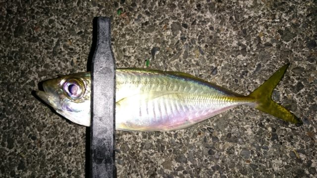 ルアーはアジ爆ジグヘッド0.5gにチビキャロスワンプをセッティング。カウント6~7でアクションさせてきます。アタリが無ければ次々移動して行きます。とりあえず最初にセイゴが釣れました。その後は風が当たってエサが溜まってそうな場所で本命のアジが1匹だけかかりました。17cmくらいでした。別な場所で20cm弱のカマスを1匹追加して納竿しました。