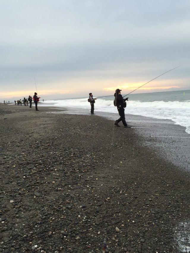 現地で仲良くなったアングラーと1等地を確保して青物に備えました。薄暗くなってきてコノシロがガツ②アタリ始めます。