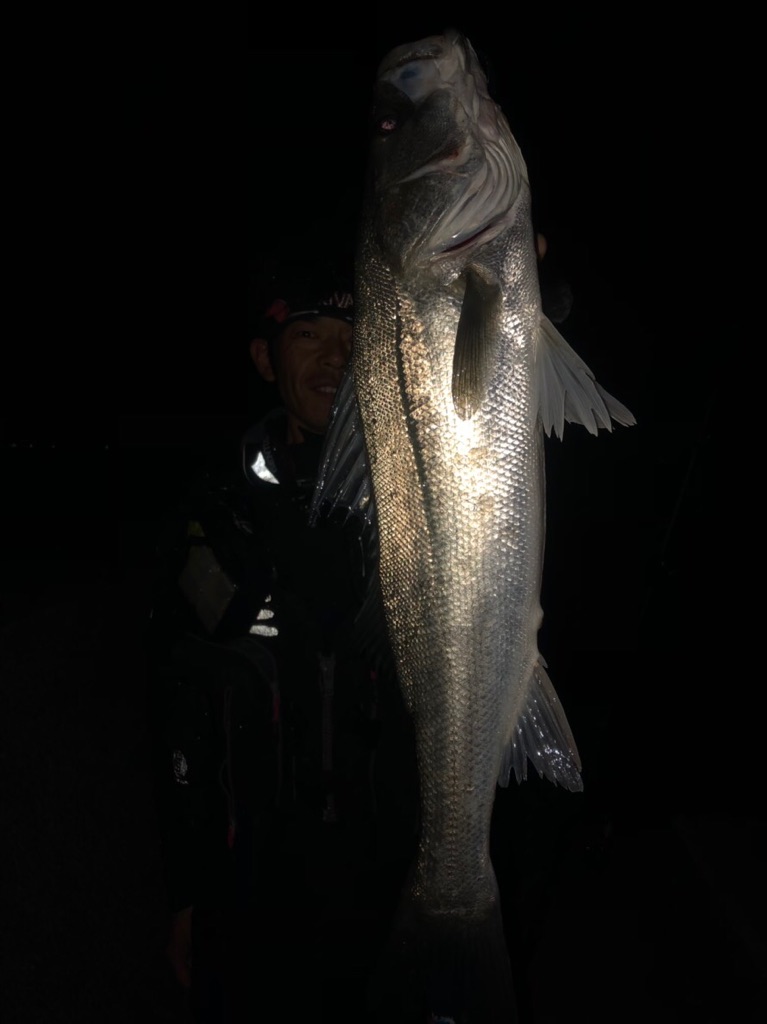 するとフォールでアタリ、フルフッキングしてゴリ巻きであっという間にキャッチしたのはシーバス65cmでした。