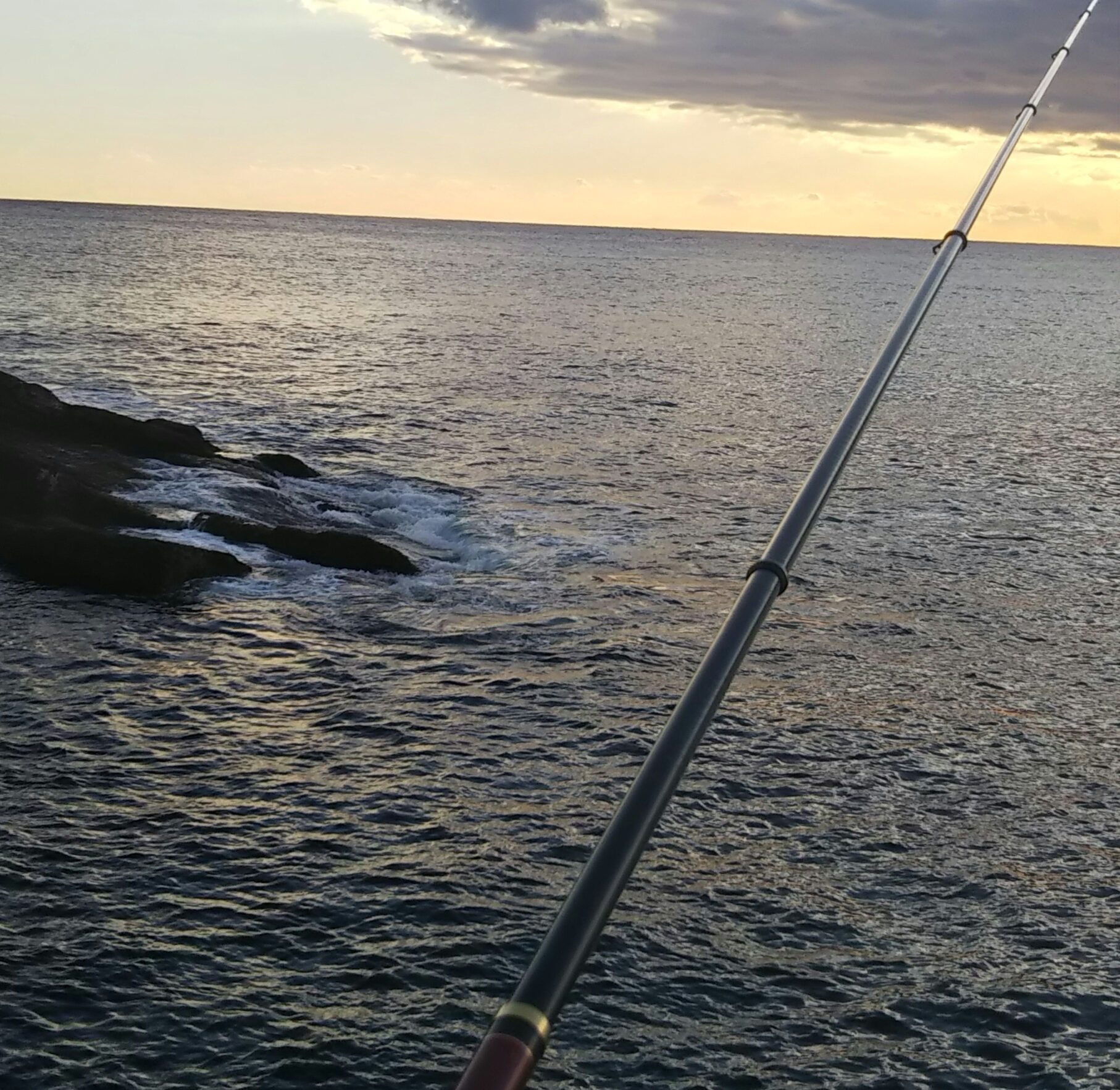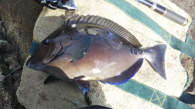 お世話になったのは榎本渡船。平日なのに20人ほどのお客様がみえます。奈良、滋賀、愛知など県外ナンバーが多数で、三重ナンバーは5台も止まっていません。しかし、磯釣りの人気はまだまだ高い事がうかがえます。6時15分出船。同行したO氏と共に上がったのは『地の地』。先日40オーバーの尾長が上がっていたポイント。仕掛けの準備を早々に済ませ。まずは0のウキにハリス2.5ヒロ、オモリなしで始めます。アテ潮がきつく、完全フカセでは釣りにならない。G2のオモリを打ちましたが、タナまで届いている感じがしません。気づけば1時間ほど時間が立っています。太陽が上がりきる前にワンチャンあるか~と思っていたが、あったのは隣のO氏。37cmのクチブトをGET。沖の潮目を狙っていたようです。そこで私も3Bの重たい仕掛けに変えて、ウキ下はは3ヒロで沖の方を攻めます。9時前。強烈な当たりと共にウキが消し込んだ!!反射的にアワセを入れ、竿が1番から順番に絞られていきます。竿を握る右手にぐっと力を入れた瞬間、痛恨のハリス切れ・・・3号ブチ切っていきました。気を取り直し試行錯誤するもオジサン×2 フエダイ×1 サンノジ×1・・・再びチャンスは訪れる事はありませんでした。リベンジ確定ですな。