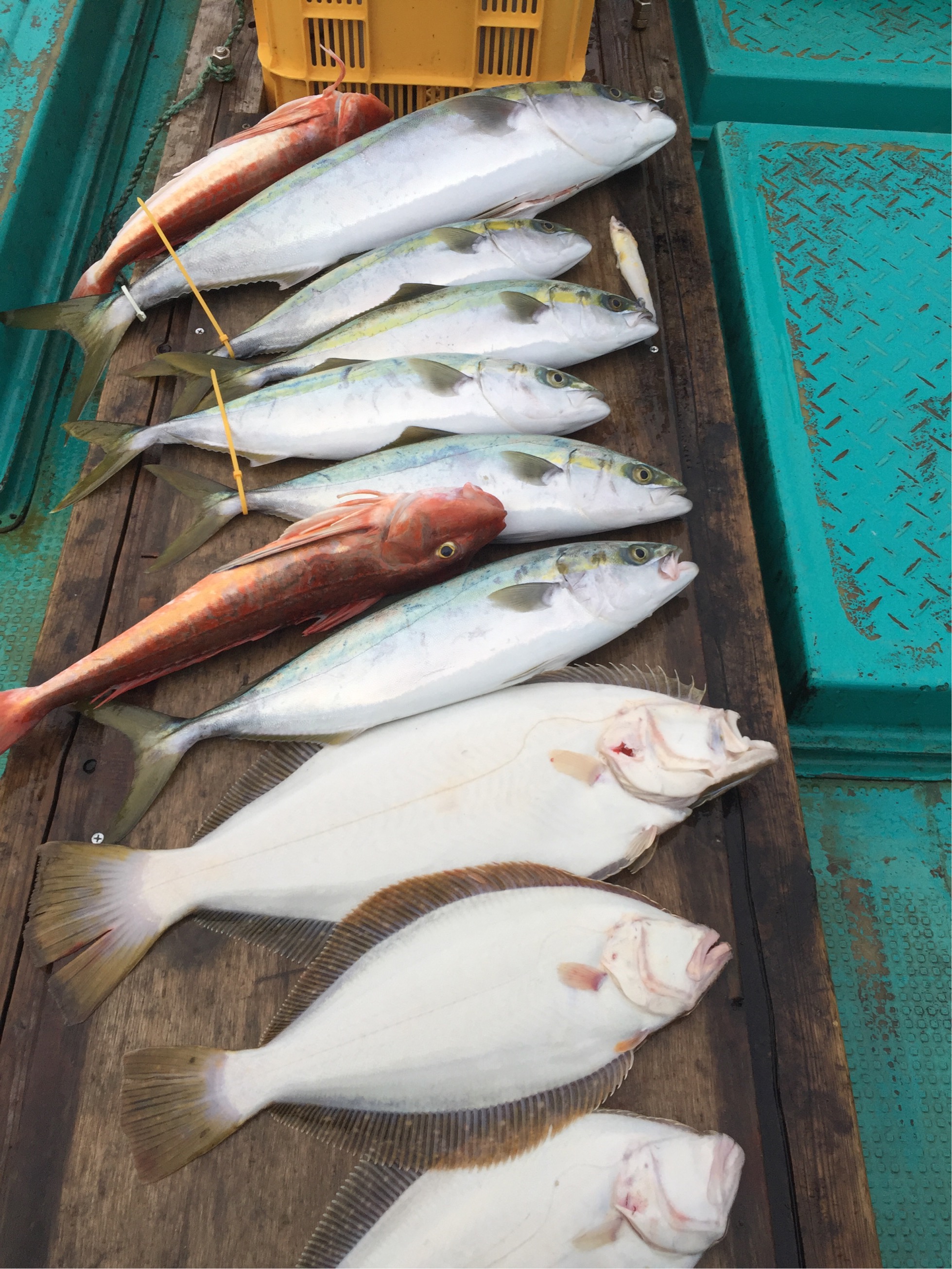 鳥羽フィッシュハンターさんにお世話になりジギングに行ってきました‼︎前日は鳥羽のルアー船でボッコボコにブリ、ワラサが釣れていたので今日も期待大!!一投目から一番信頼しているジグTGベイト!のグリーンゴールどを使用しました。開始早々、同船されてる方にヒラメが二匹ヒット!底付近を中心に探ってみるとすぐに私にもヒット!小ヒラメ、ホウボウ!と幸先よく連続で釣れましたが、そんなに甘くはありませんでした……その後湾内のシーバスのポイントでハマチのダブルヒット!もありましたがその後は不発…最終、ヒラメ1.ホウボウ1ハマチ2匹で終了となりました!