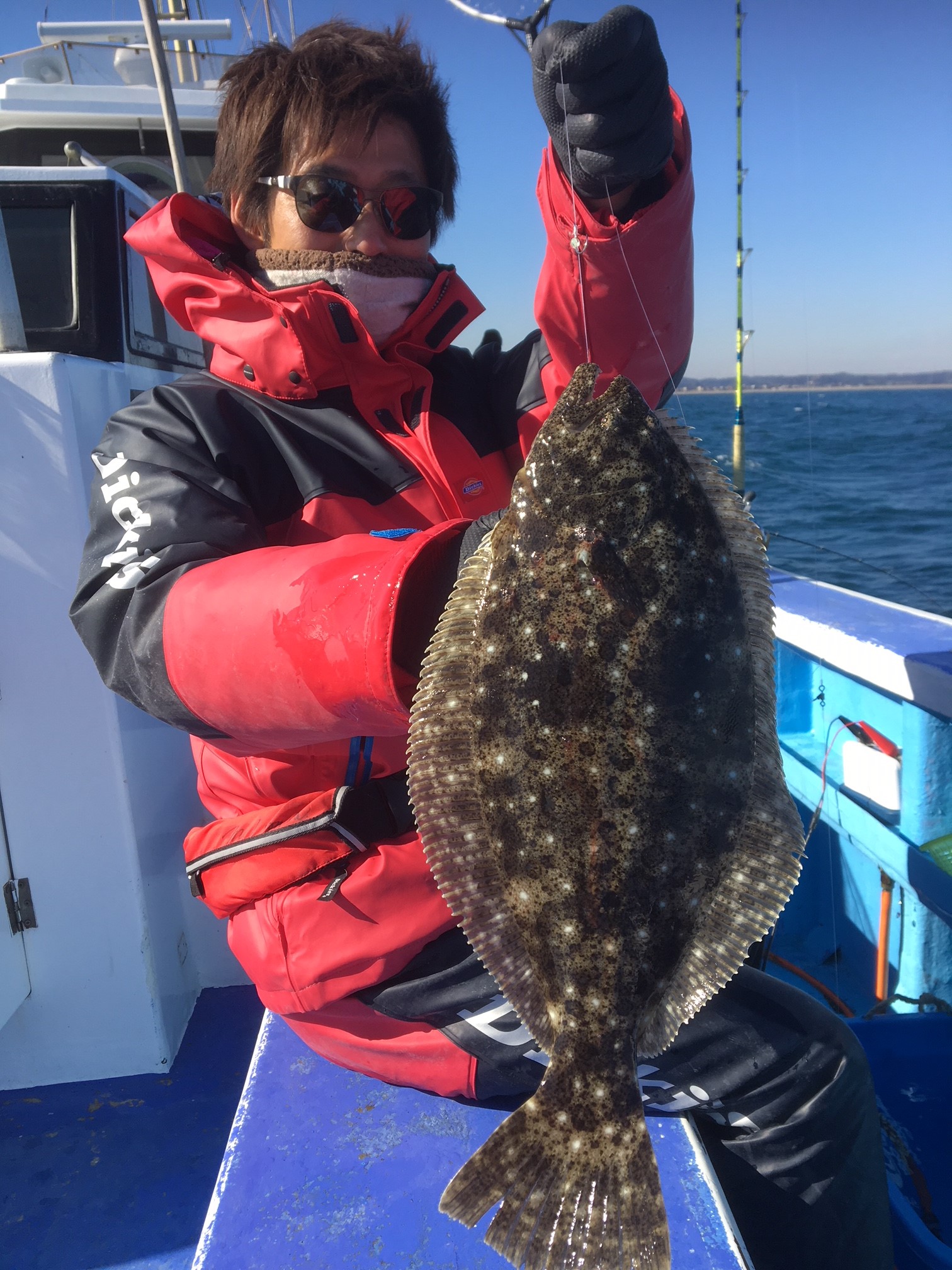 さすがに静岡からはちょっと遠かったですが折角来たので頑張って釣ろうと思ったのですが、出船時、気温が-2℃。船も凍っていて滑るし風も真正面から吹いてくるしで久しぶりに釣りしていて寒~(:_;)って思いました。
