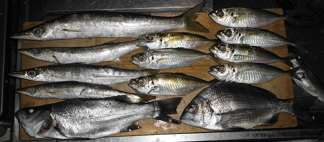 昼間は休憩して夕暮れから探り始めるがフグ2ゼンメ1とダメダメ、暗くなり場所移動して探るも1アタリとネンブツが釣れただけで移動、昨夜2gで何とかアジを釣った場所で投げるとアジ3匹釣るのがやっと・・・やはり晴れた空に浮かぶ月の威力がハンパナイ。それでも探り続けカマスを追加、しかし後が続かないので昨夜マダイが釣れた方向に投げる。すると一撃で食った!そして何ども突っ込まれ マサカの根にいかれる。ラインを緩め待っていると一気に魚が飛び出した!その瞬間ラインブレイク、残念!すぐにフックを少し大きくして投げるとまたヒット!先ほどより更に重い!やり取りをしているとラインが擦れている感じが伝わる。かなり頑張ったのだが結局根ズレによるラインブレイクで終了です。