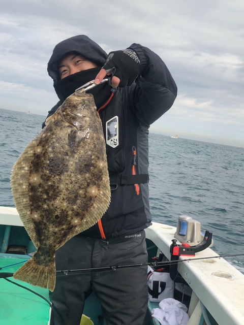 仕掛けにイワシを付け投入。友人は最初15分は電動リールに苦戦していたみたいですが慣れてきたみたいで良型のヒラメをキャッチ!