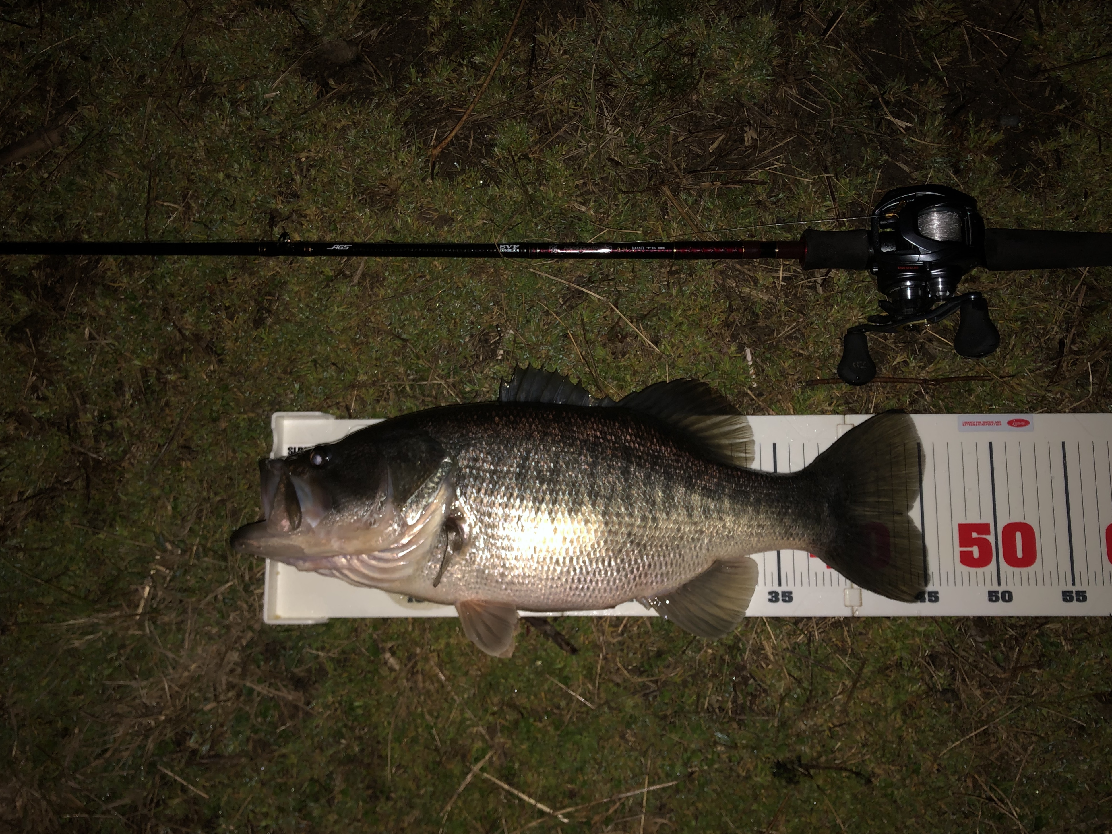 夕まずめから後半スタート。ザリバイブで40upを追加し風が止んだタイミングでスーパースティックのミドストに変更!すると50upのプリスポーン!!今日は冴えています!!