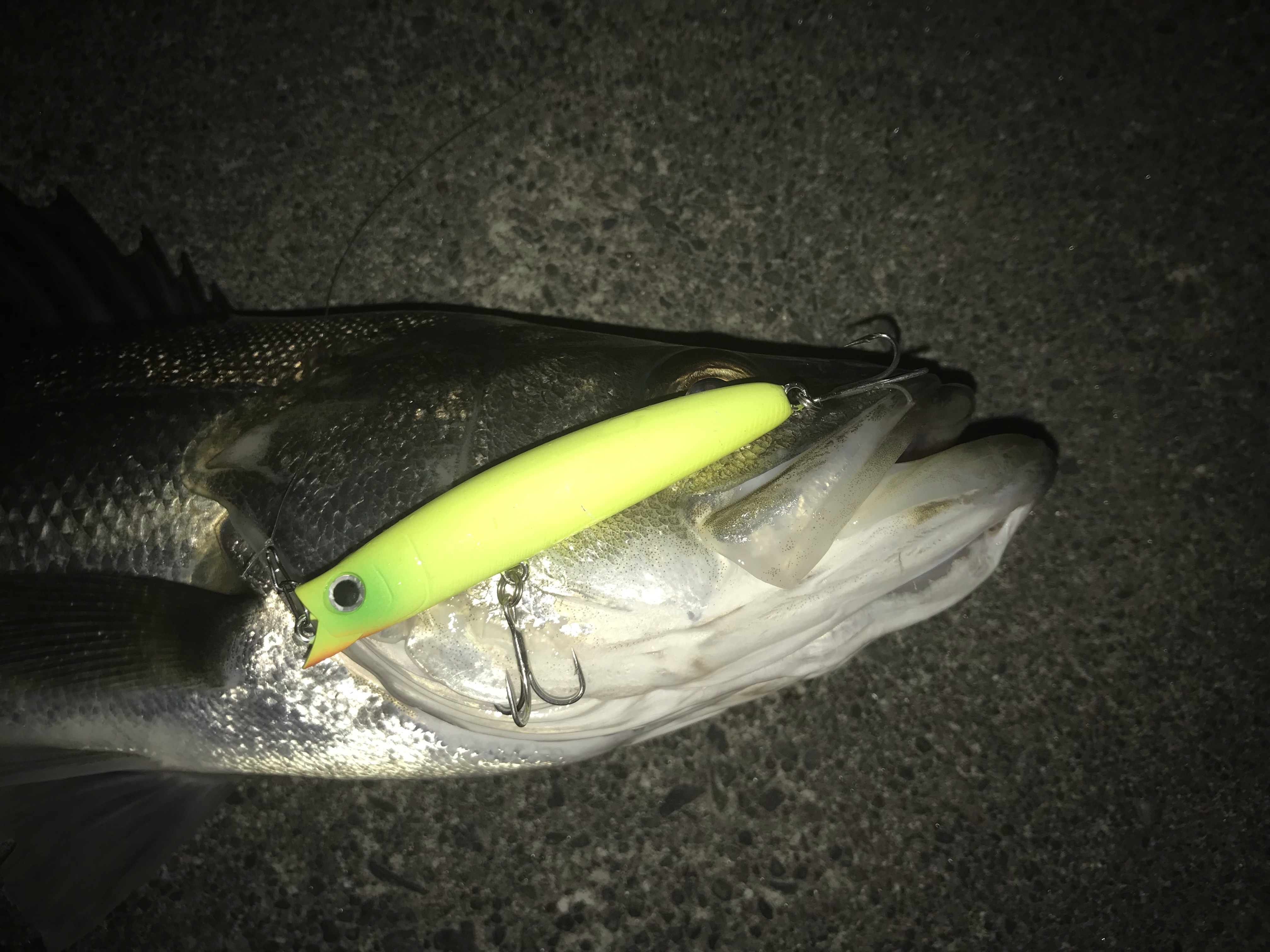渓流に行った後豊橋店の春田君と浜名湖シーバスに行ってきました。9時半過ぎにポイントに入りましたが潮が動かず苦戦しました。1時間程すると潮が動き徐々に反応が出てきてボイルが出た周辺を探って51cmのシーバスを釣りました。ルアーはシャロール75Fでした。その後もバイトがかなりありますがなかなか乗らず35cmほどのをコルセアで釣って終了しました。今回は完全にマイクロベイトパターンで小さなシンペンやシャローミノーを投げないと当たらなかったです。桑名周辺も今はマイクロベイトパターンなのでコルセアなどの小さなルアーを投げてみてください!釣れますよ!