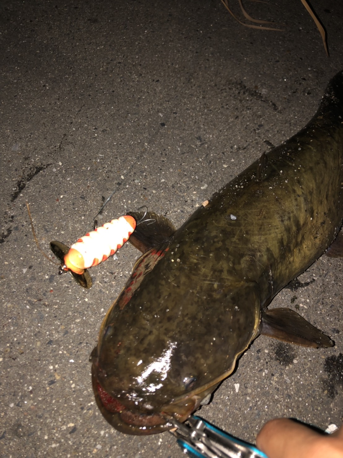 ナマズ釣りに行ってきました!PM10:00くらいに最初のポイントに着いて、やってみるも釣れずそれからいろいろなポイントをランガン。3ヶ所目でボコッ!! ボコッ!!ボコッ!!1回出て2回追いかけてきましたがのらず、何回かやっているとスレてきたので違うポイントへ。次のポイントでは1投目からボコッ!出ましたがのりません。これが何回か続いたのでしばらく周辺で粘ってみることに。11:30ごろに1投目で出た場所に戻り1投目でボコッ!ボコッ! グググ!!!のったーーー!!!(≧∀≦)上げてくると50くらいあるナマズです♪実はナマズを釣ったのは初めてなのでむっちゃ楽しかったです。今回のヒットルアーであるキャタピーは只今在庫ございませんが、他にポンパドールjrナマズver.などの実績あるルアーの在庫ございます!是非ご来店ください〜!