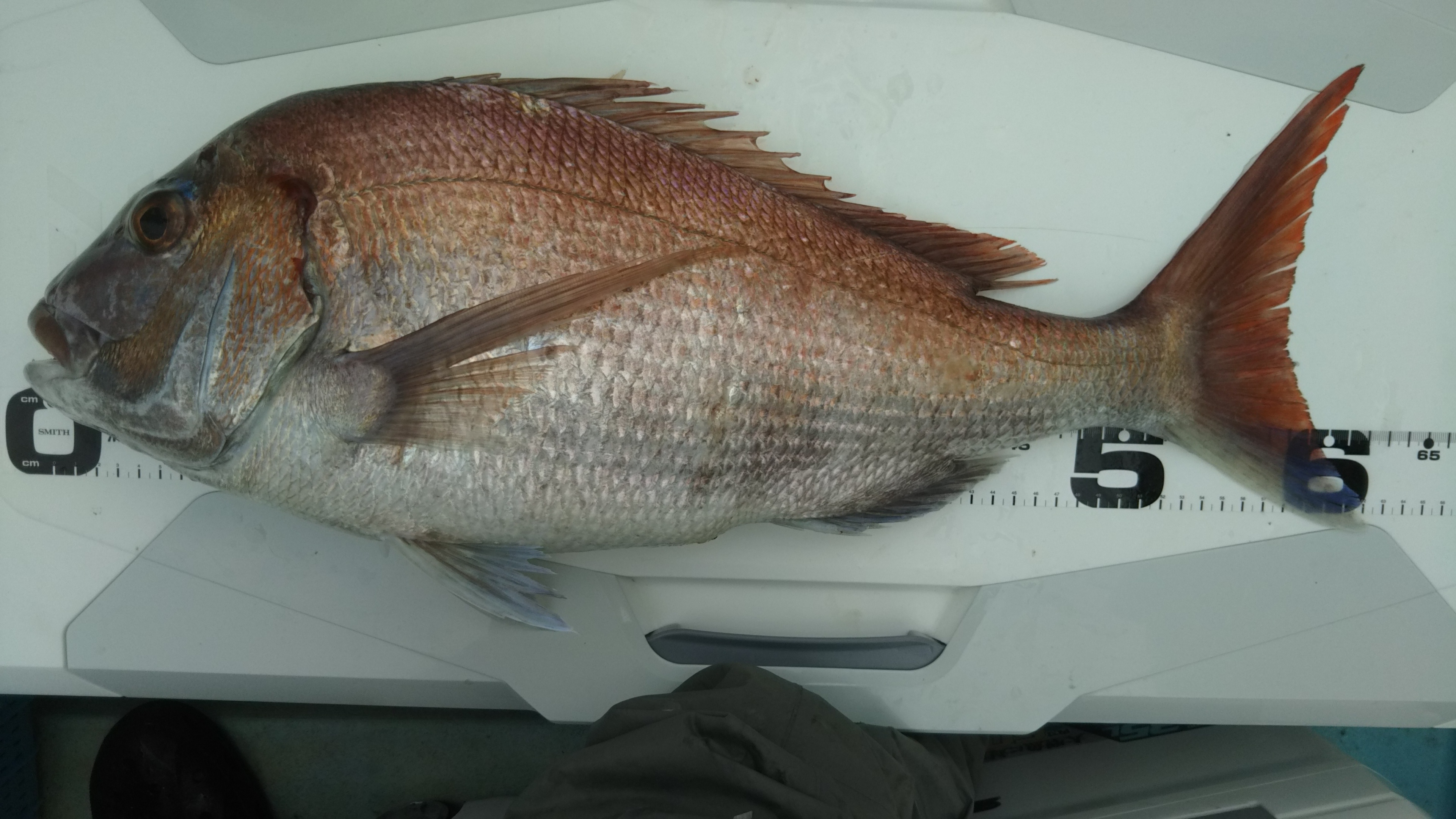 その後も大型のヒラメやサゴシなどポツポツ上るが私には配当が・・・やっぱりTGベイト!これで釣れなかったら今日は諦めようと120g赤金投入。隣の同行者がばらした直後にドスン!とワラサ。ごっちゃん気味でしたが良しとしよう。その後は着底→巻き→ストップ→巻きで真鯛!その後も一枚追加。その後も同じ釣り方で4回アタリあるが途中でばれたりフッキングしなかったりで終了となりました。